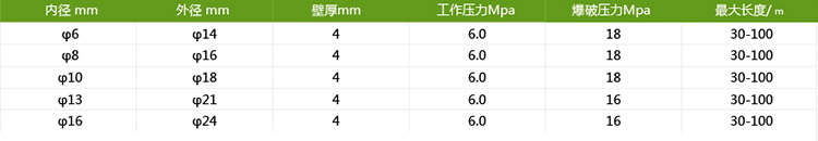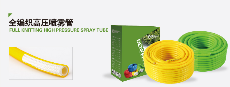 高壓噴霧管內(nèi)層采用抗酸堿及耐藥型塑料,中層編織高密度、高拉力纖維,可抗160公斤爆破壓力,易于操作,靈活耐磨。具有耐腐蝕、耐硬化、耐彎曲、耐高溫、耐低寒、耐高壓等特點,外表光滑,色澤艷麗。外皮添加UV抗紫外線劑,烈日下暴曬不易龜裂。可按照客戶要求制作各種規(guī)格以及國際標(biāo)準(zhǔn)接頭。